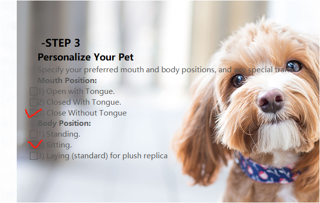 To create plush replica with the correct proportion, please select the correct size of your pet on the ordering page.